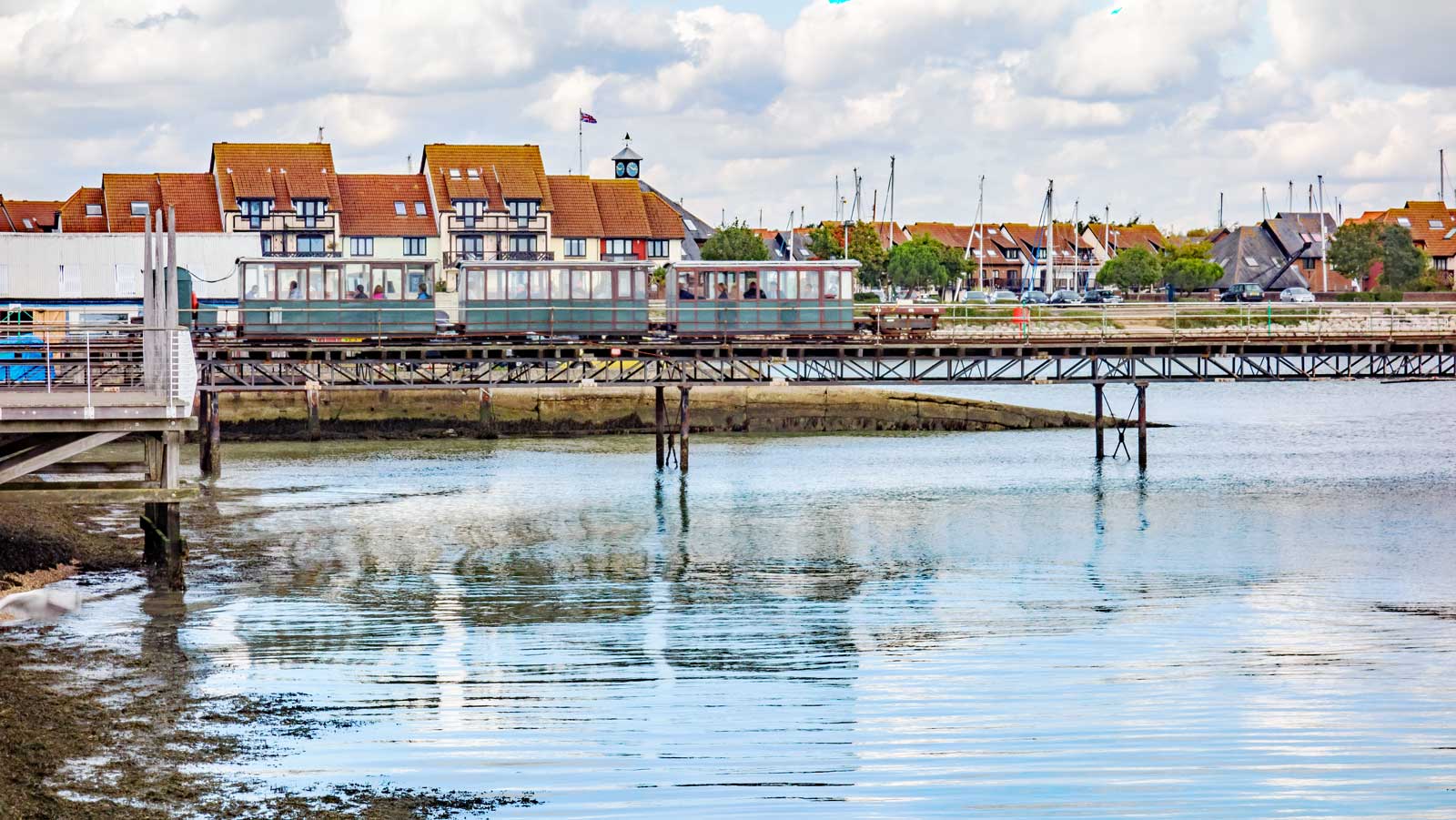 The Hythe Ferry runs from Southampton, across Southampton Water, to the small village of Hythe. The future of the ferry, which was under threat, has recently been secured. Although Hythe village is not particularly interesting, it’s worth doing the return trip, not only because a boat trip is always interesting, but also because at Hythe the ferry docks at the end of a 640 metre pier dating from 1870, and where you can catch the most rickety of trains, dating from the 1920s, to take you to the village. All the images taken on my trip today can be clicked for larger pictures.