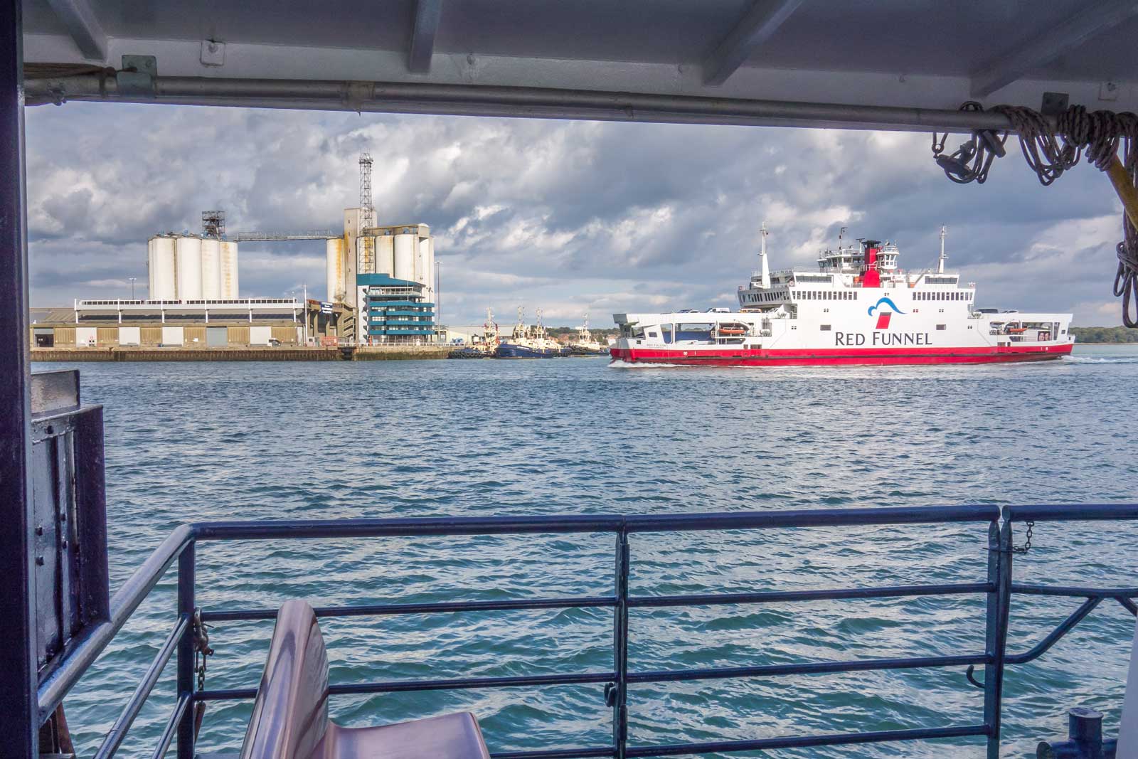 The Hythe Ferry runs from Southampton, across Southampton Water, to the small village of Hythe. The future of the ferry, which was under threat, has recently been secured. Although Hythe village is not particularly interesting, it’s worth doing the return trip, not only because a boat trip is always interesting, but also because at Hythe the ferry docks at the end of a 640 metre pier dating from 1870, and where you can catch the most rickety of trains, dating from the 1920s, to take you to the village. All the images taken on my trip today can be clicked for larger pictures.