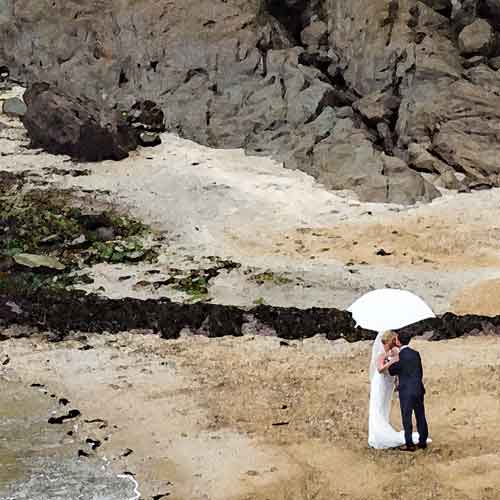 Yesterday was a scorcher, except when we were under the jungle canopy, but today it’s rained all day. So when the bride and groom turned up for a photo shoot on the beach, they must have wished they had wed a day earlier.