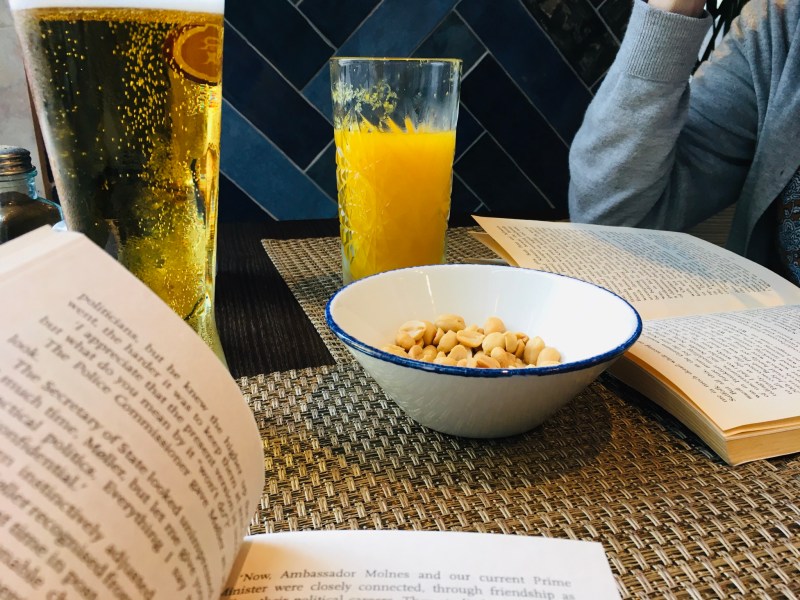 Drinks in our hotel’s beautiful bar. The missus, a draught beer, a Joe Nesbo and some peanuts. Perfect.