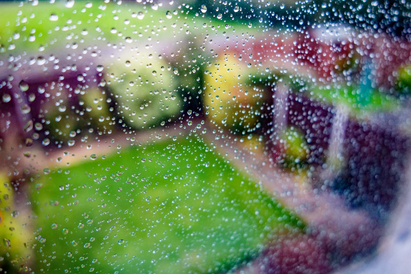The weather has deteriorated – I think it’s even worse in the West. Playing around with manual focus on my Sony RX100 I could get the raindrops on the window pane into focus. It’s just possible to make out the the reflection of the park in the raindrops (blown-up 2nd image).