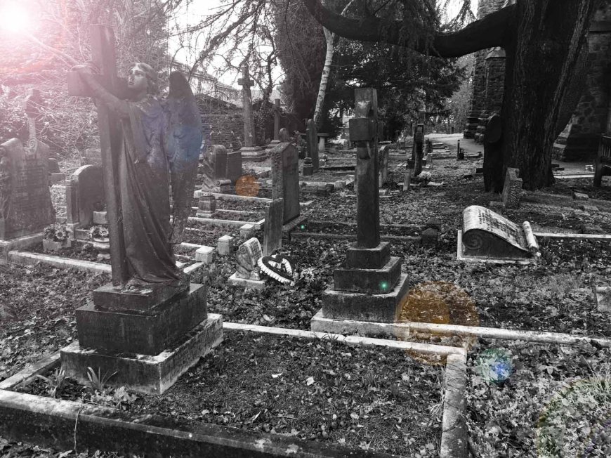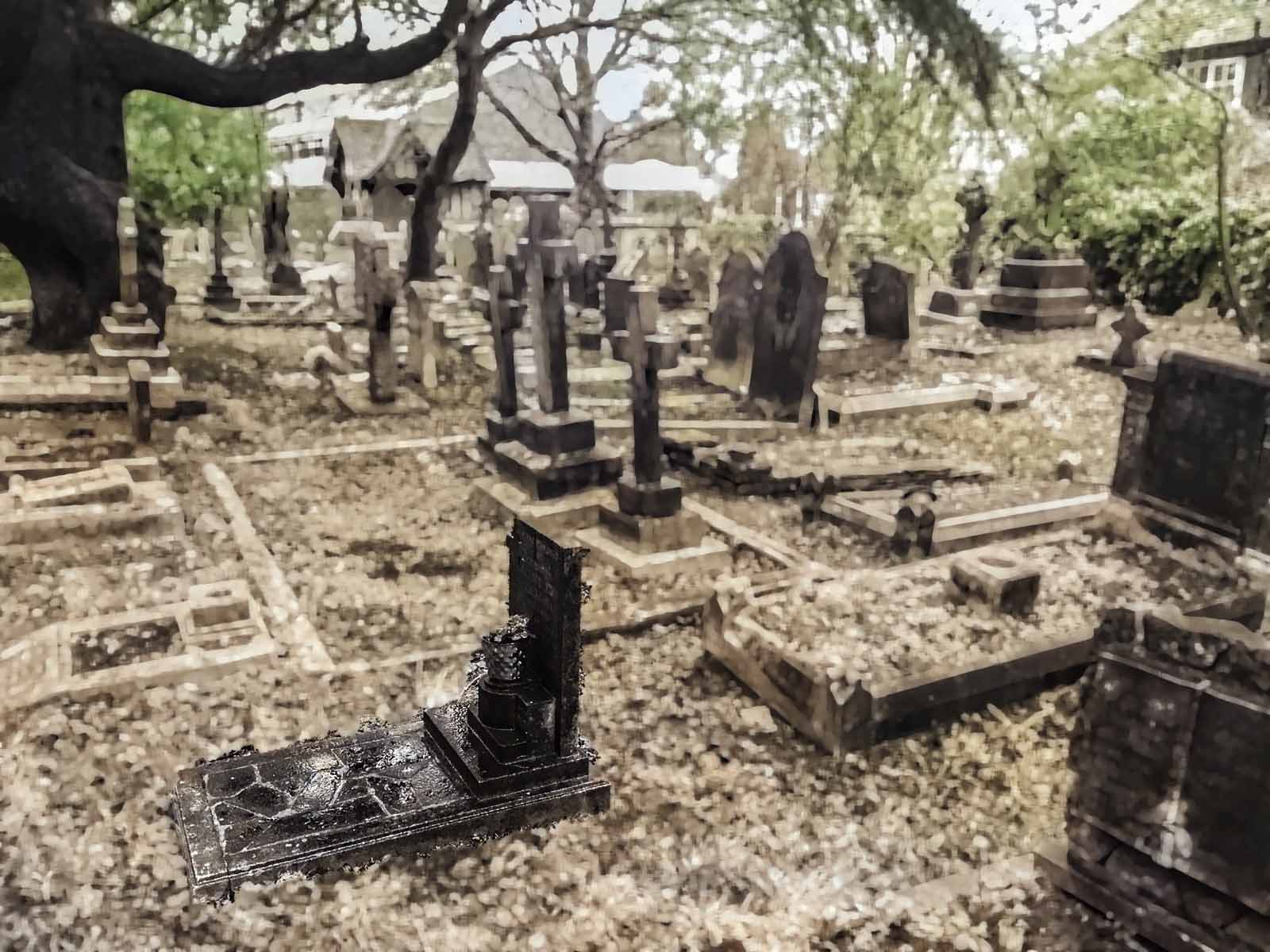 In the churchyard on a drizzly day then home for some Photoshopping.
