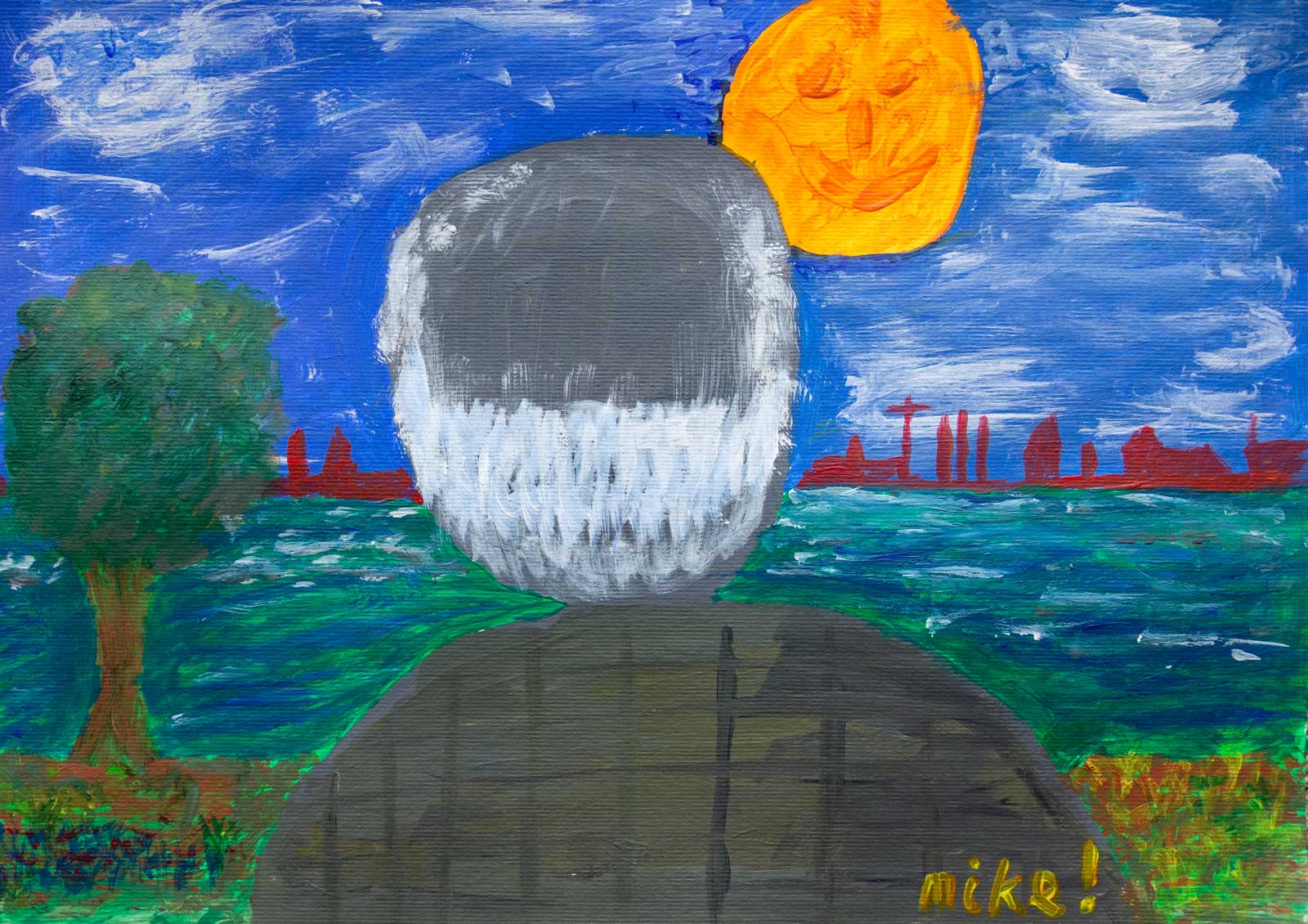 My latest acrylic painting makes me laugh. It’s not what I intended painting but this is what it became. My wife says she couldn’t see what it was, but she eventually got the idea. I thinks it’s my best yet!
