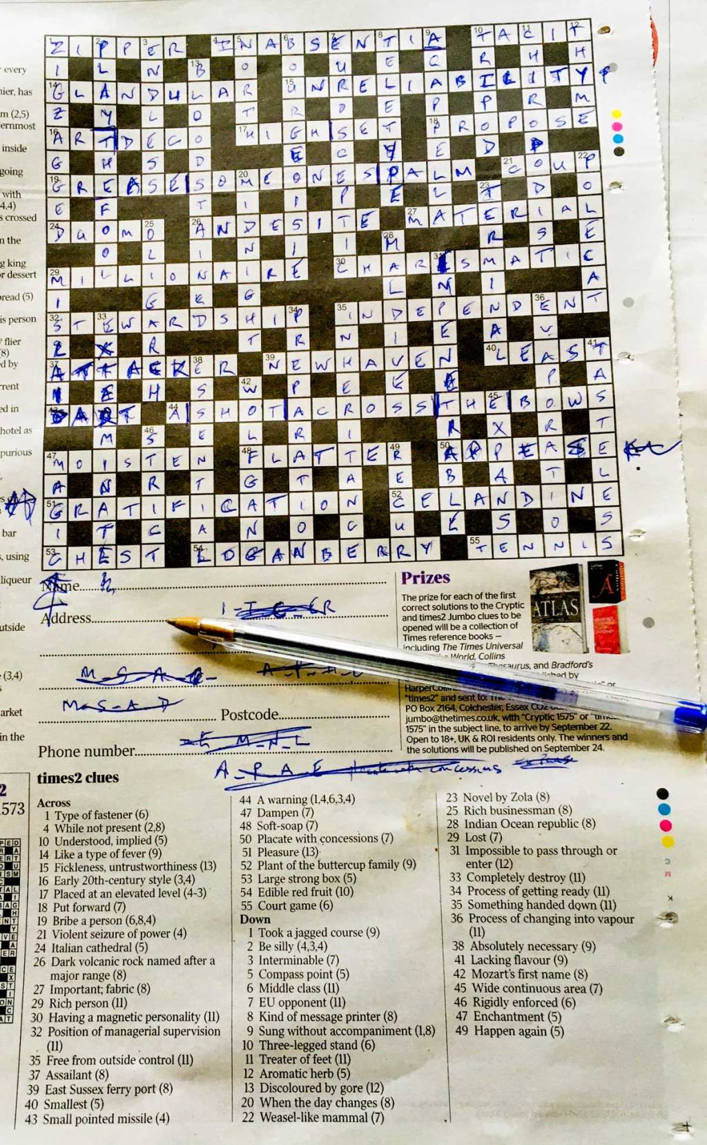 Saturday’s jumbo crossword in The Times – completed!