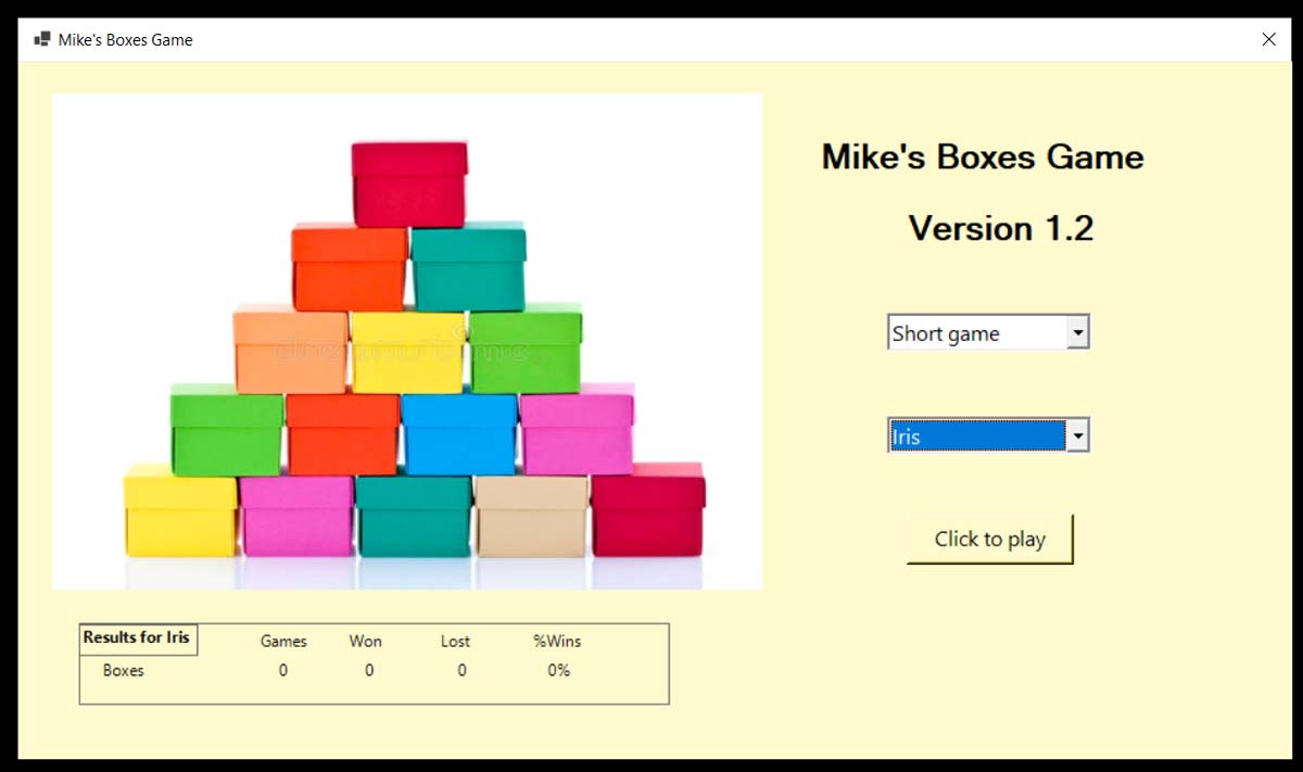 Using graphics turned out to have a sting in the tail when I discovered towards the end of the development that all the graphics disappeared if the game screen was minimized or resized during the game. Fortunately, there was a technical, but rather straightforward solution that required not too much modification to the code. Phew!