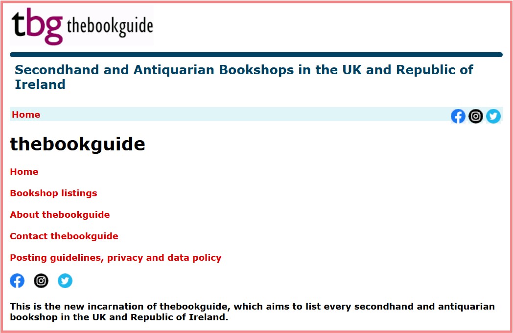 The Book Guide – what a find! A great site for locating second-hand bookshops. OK it’s a bit of a clunky site but the information appears comprehensive and is kept up to date. Click on the image below to open the site in a new window.