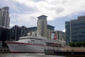 Cups of tea and coffee in The Angel at Bermondsey were a curiosity. The only coffee on offer was Nescafé, and the tea and instant coffee came served in cups and saucers but without the saucers! Amazingly one of our ex-neighbours walked in whilst we were there – she was born in the area and was revisiting old haunts. Lunch in the Prospect of Whitby was good pub food and with wonderful views. It’s recommended to explore all the rooms in this interesting Thames pub. Finally a walk on to Canary Wharf to see some nice boats docked for the Olympics.